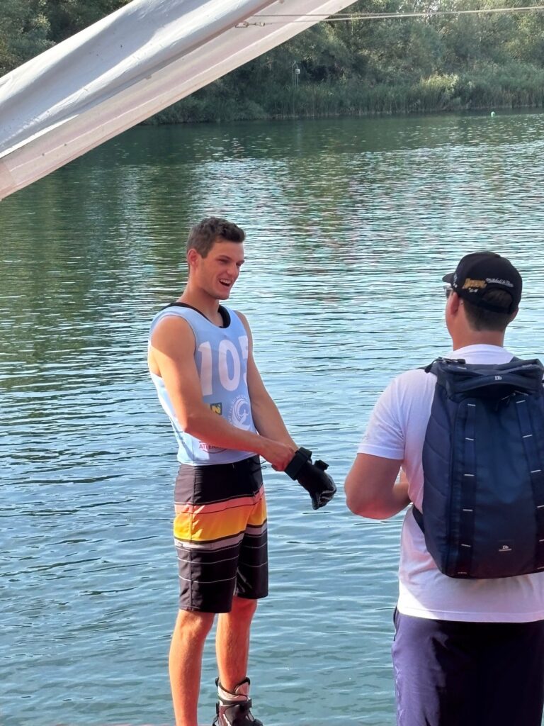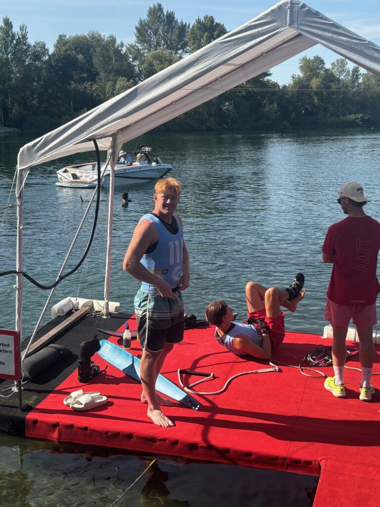 Leo Cederqvist från Nyköpings Vattenskidklubb hade också ett fint mästerskap. Han åkte till sig en finalplats genom att göra 4 bojar på 11,25 meters lina i utslaget vilket räckte till en plats i finalen. Väl framme i finalen var förhållandena svåra med relativt kraftiga och byiga vindar. Den fina anläggningen strax utanför Wien är dock hyfsat skyddad så på vattnet var det relativt stilla utan stora vågor. Leo lyckades trots byvindarna prestera 2 bojar på 11,25 meters lina i finalen. Detta resultat visade sig vara konkurrenskraftigt och placerade Leo på en fin sjätteplats. Grattis Leo!